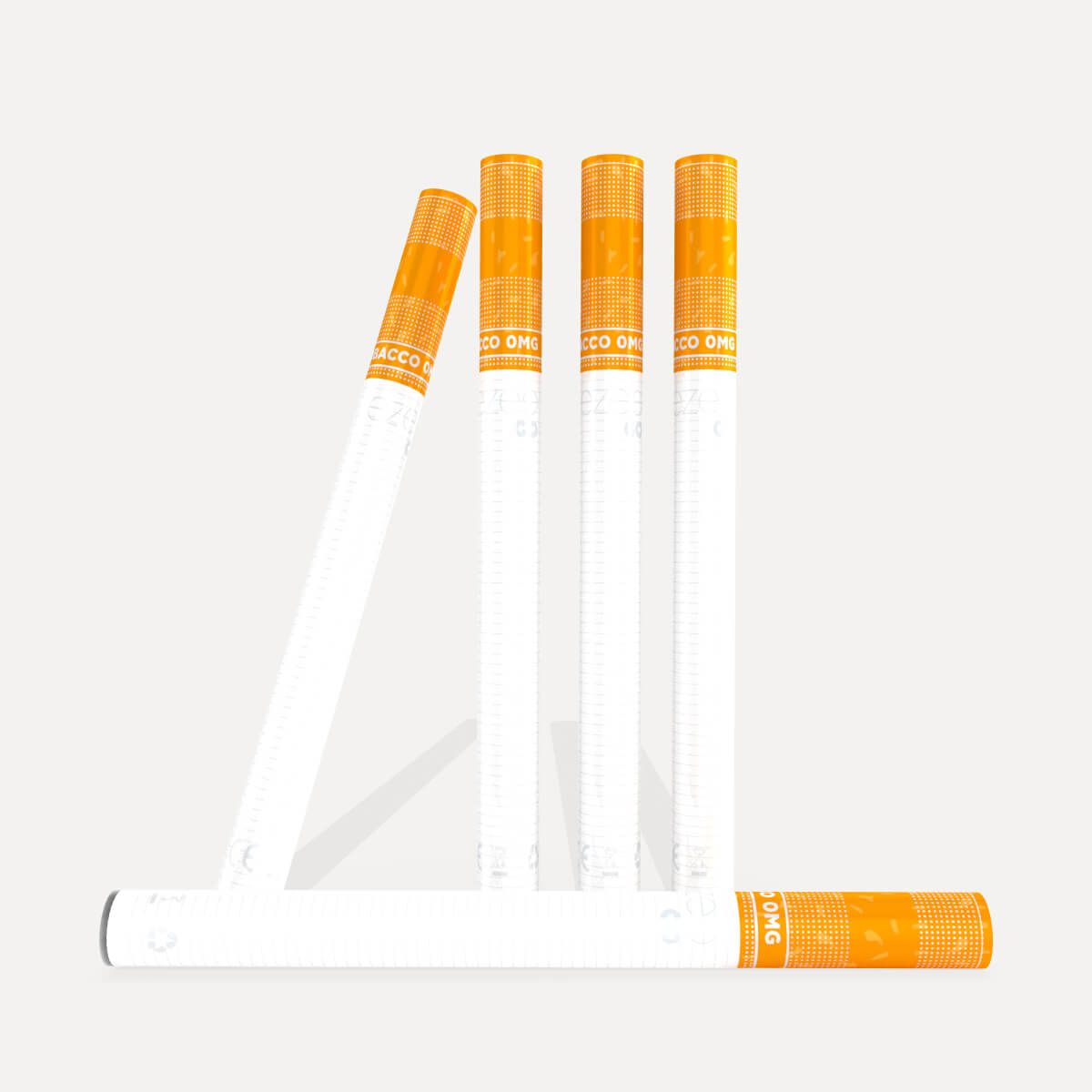 - Ligner en almindelig cigaret (hvid krop, gult filter)